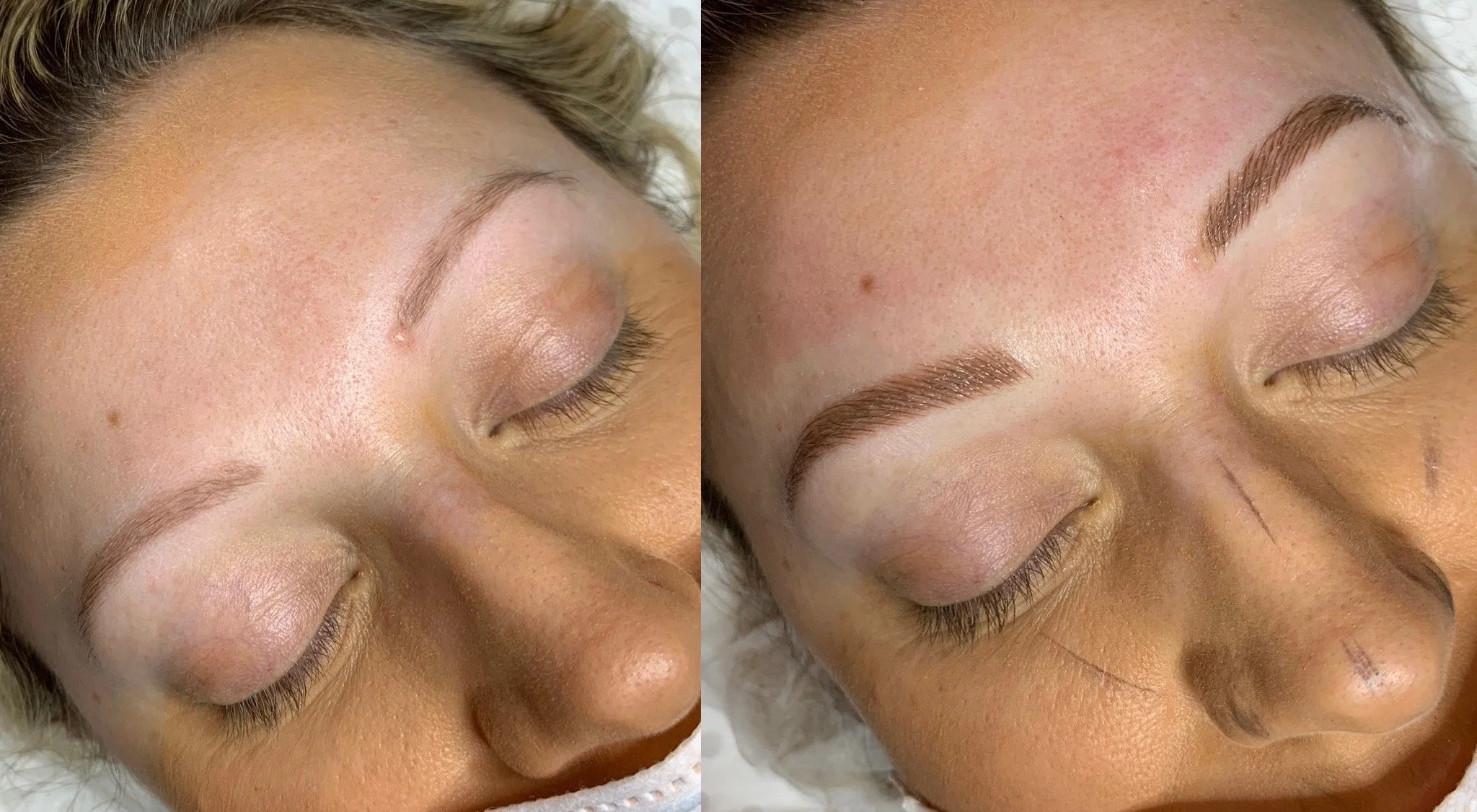 Cosmetic brow tattooing, commonly referred to as Semi-Permanent Make-Up, provides a long-lasting “freshly applied” make-up look to improve fullness, address symmetry issues and fill gaps. The organic pigment used fades naturally over time and the longevity of the treatment depends on the condition of your skin, your age, and the colour used (with darker colours lasting longer than lighter ones).